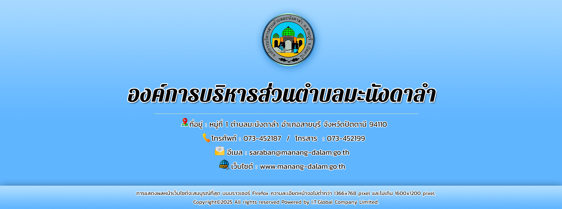 ประกาศเรื่อง ช่องทางอิเล็กทรอนิกส์สำหรับการติดต่อองค์การบริหารส่วนตำบลมะนังดาลำ